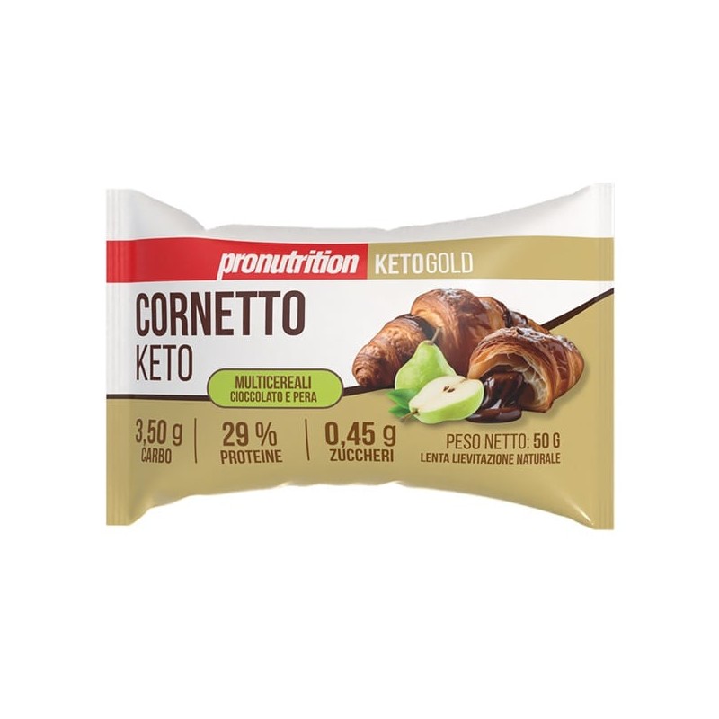 Cornetto Keto Multicereali Cioccolato e Mirtilli 50g di Pro Nutrition è un delizioso cornetto chetogenico della linea Keto Gold, ripieno di marmellata ai mirtilli e squisito cioccolato senza zuccheri con un fantastico impasto ai cereali super fragrante.