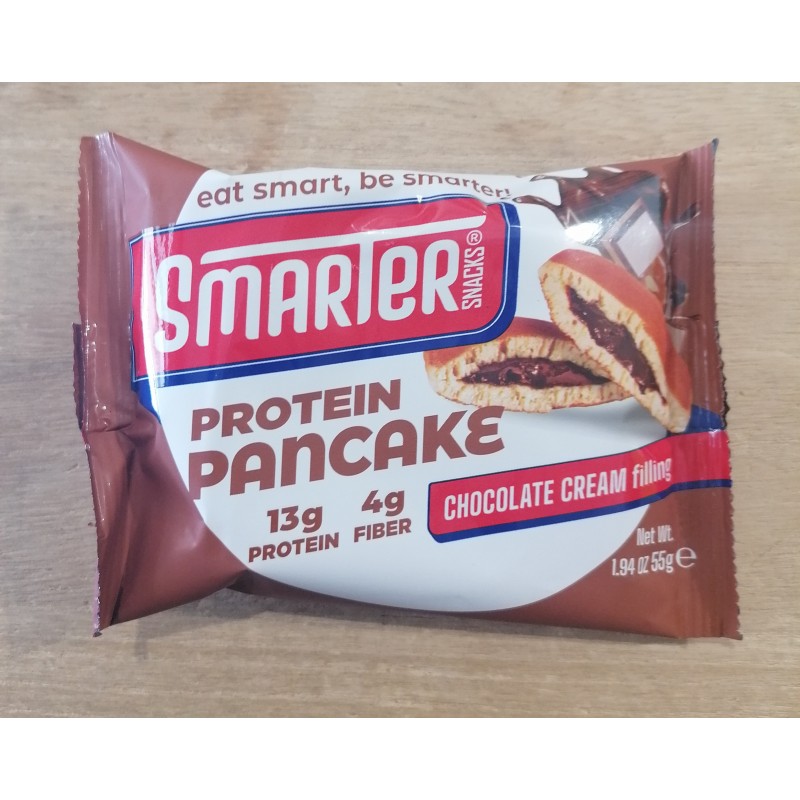 Concedetevi il perfetto equilibrio tra sapore e nutrizione con il pancake proteico con ripieno di crema al cioccolato di Smarter Snacks. Ogni pancake contiene 13 g di proteine e 4 g di fibre per mantenervi sazi ed energici per tutto il giorno. Gustatevi il ripieno cremoso e morbido al cioccolato, mentre alimentate i muscoli e supportate il metabolismo. Ideale per gli amanti del cioccolato che desiderano uno spuntino sano e ricco di proteine.