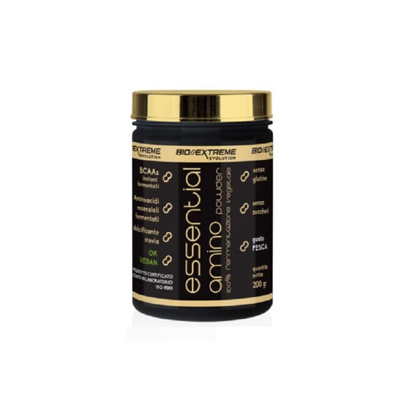 ESSENTIAL AMINO gusto pesca è un integratore alimentare per l’integrazione di aminoacidi essenziali che contribuiscono al soddisfacimento del fabbisogno azotato, e di aminoacidi ramificati (BCAA), indicato per l’integrazione della dieta dello sportivo, anche dopo l’esercizio fisico.